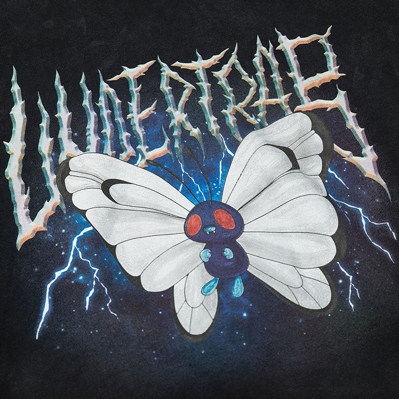 Men Hip Hop Hoodie Sweatshirt Lightning Butterfly Streetwear Hoodie Retro Vintage Washed Black Hooded Pullover Harajuku