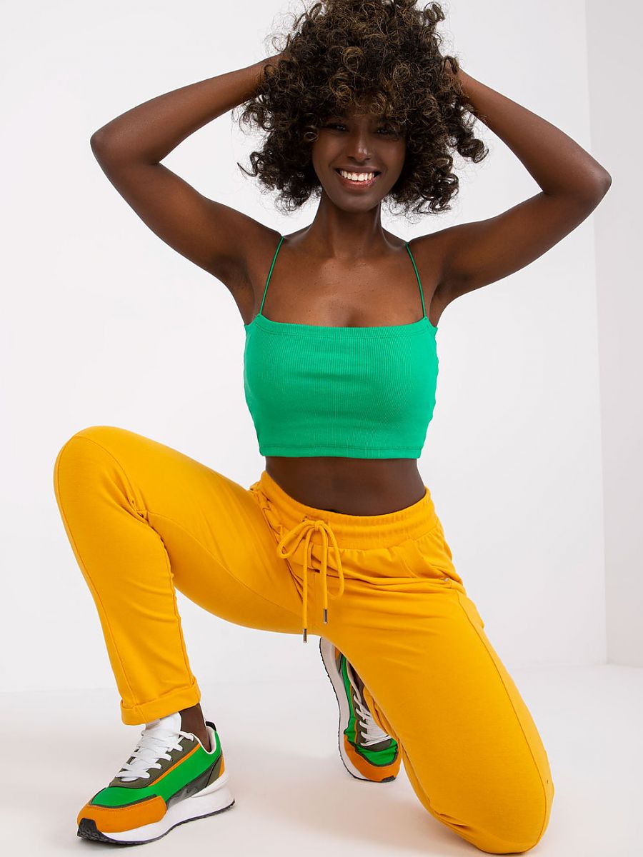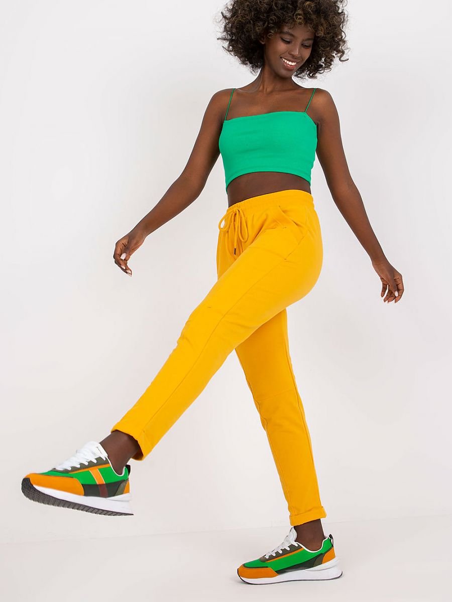 Joggingbroek met hoge taille en rubberen band en touw in de taille. Broek aan de zijkanten met steekzakken. Ideaal voor elke dag.