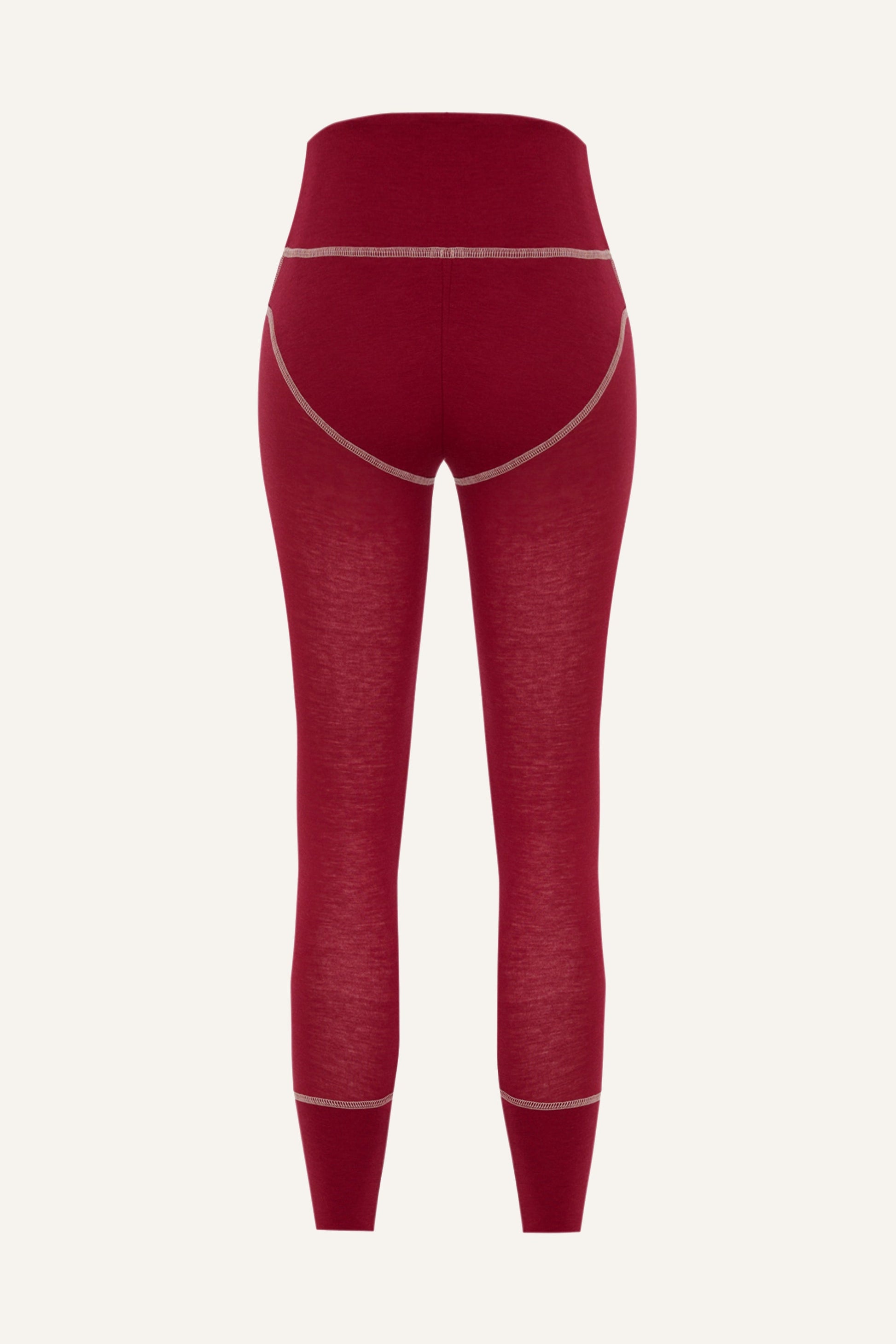 De duurzame Lyocell-wol gebeeldhouwde legging – bordeauxrood. Gebouwd om kracht te geven. Deze legging is beweging in zijn puurste vorm - gemaakt van een ademende mix van 70% lyocell en 30% wol, met een plasticvrije kern en crèmekleurige stiksels voor een designerafwerking.